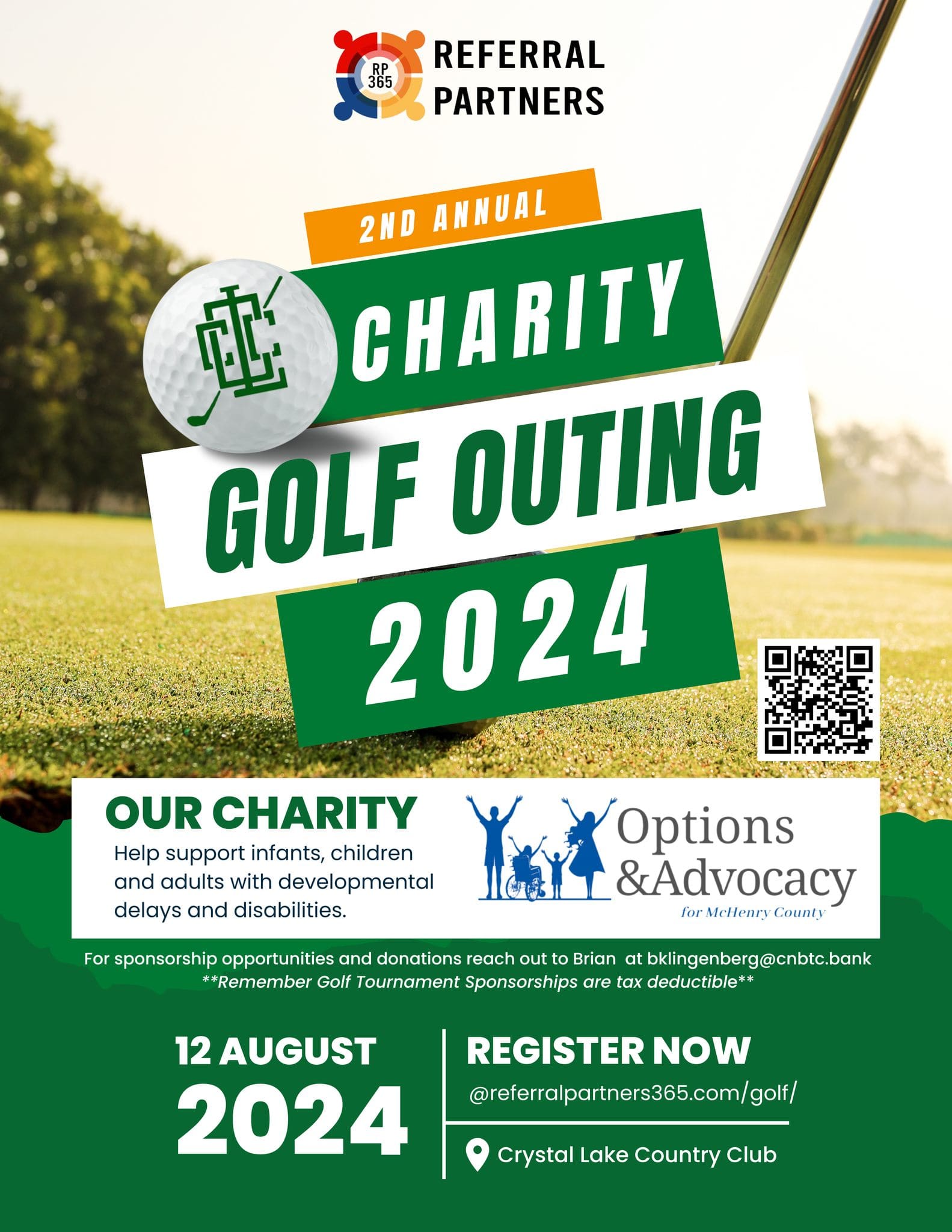 Join Us and Referral Partners 365 as we host our 2nd Annual Charity Golf Outing raising money for Options & Advocacy for McHenry County. Money raised will help support infants, children, and adults with developmental delays and disabilities.