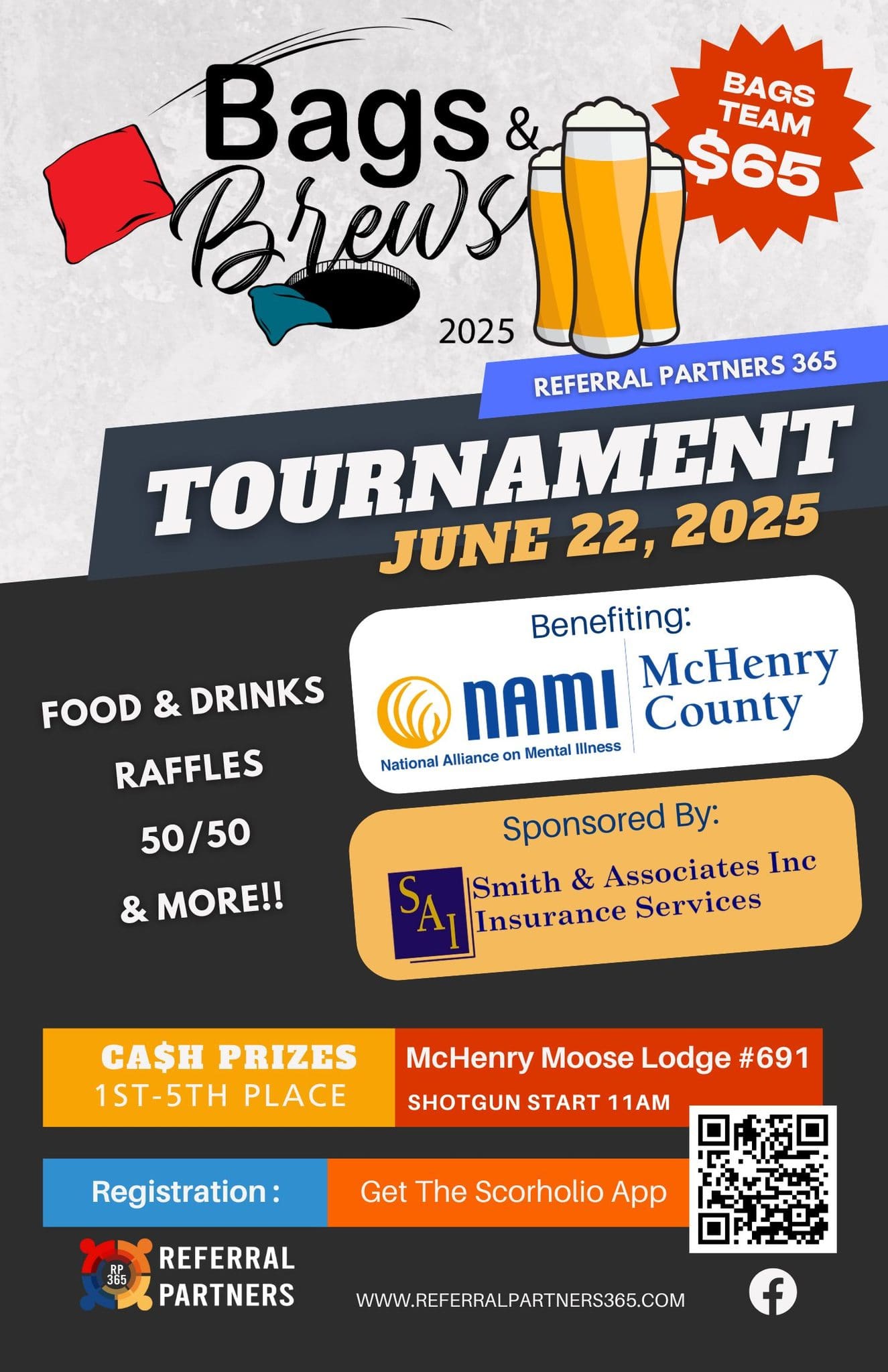 We are the proud sponsor of this year’s Bags tournament supporting NAMI McHenry County.